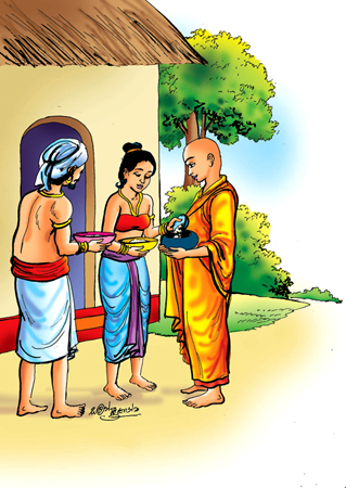 සඳහා පිළියෙල කොට පූජා කළේ ය. සාමණේර හිමියෝ එම දානය රැගෙන දාන ශාලාවට වැඩිය පසු