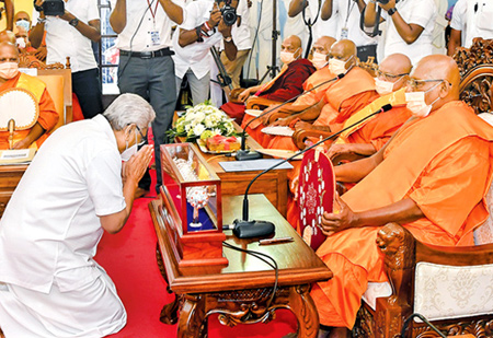 මෙම උතුම් පුණ්ය කටයුත්තට පෞද්ගලිකව උනන්දු වූ ජනාධිපතිතුමාට මහා සංඝරත්නයේ ආශිර්වාදය පිරිනැමීම හා ස්තුති කිරීම උදෙසා පසු ගිය දා (02) කෝට්ටේ රාජමහා විහාරයේ දී සංවිධාන කෙරුණු විශේෂ පුණ්ය මහෝත්සවයේ දී කෝට්ටේ ශ්රී කල්යාණි සාමගී්රධර්ම මහා සංඝ සභාව විසින් ජනපතිඳුන්ට “ශ්රී ලංකාධීශ්වර පද්මවිභූෂණ” ගෞරව නාමය ද පිරිනමන ලදී.