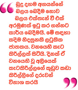වඩා එක්ව ලණු වීම ශක්තිය ගොඩ නැඟෙන අවස්ථාවකි. එසේ නොවුනොත් සතුරා ඔහු කැමැති