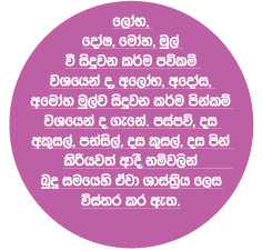 ලෝභ, දෝෂ, මෝහ මුල් වී සිදුවන කර්ම පව්කම් වශයෙන් ද, අලෝභ අදෝස අමෝහ මුල්ව සිදුවන