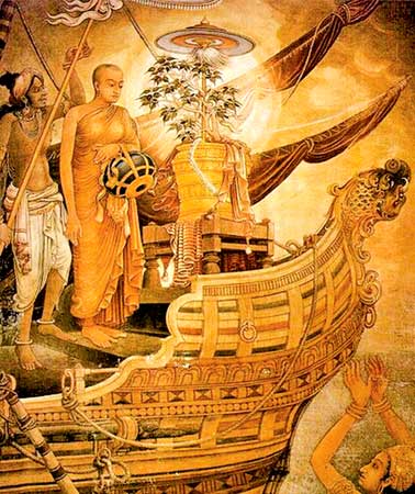 ගත් ධර්මාශෝක අධිරාජයා කරවටක් ජලයෙහි බැස, නැවෙහි තැන්පත් කළේය. සංඝමිත්තා තෙරණිය