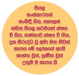 “ඉපදීම ක්ෂය වී ගියේ ය. උතුම් බඹසර ජීවිතයක් ගතකොට අවසන් කරන ලදී. නිවන පිණිස කළ යුතු සියල්ල සම්පූර්ණ කරන ලදි. යළි නිවන පිණිස කළ යුතු කිසිවක් නැත්තේ ම ය.”
