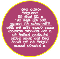 වෙමි. පුත්රයාගේ ඊම කැමැත්තෙමි’යි අම්මා තම පැවිදි පුත්රයාට දූතයකු මාර්ගයෙන්
