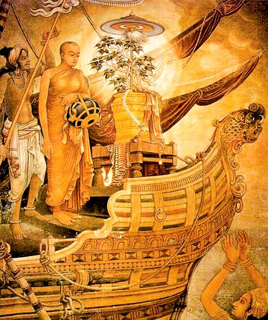 සංඝමිත්තාගමනය යන්නට ම දුමින්දාගමනය යැයි කියන බව ඇතමකු ප්රකාශ කරතත් එය සාවද්ය වේ. දුමින්ද යනු සංඝමිත්තා යන පදයට කියන තවත් පර්යාය (සමාන) පදයක් බව ද ඔවුහු පවසති. එයත් සාවද්ය වේ. නමුත් සංඝමිත්තාගමනය නිසා දුමින්දාගමනය සිදු වූ බව සත්යයකි. සංඝමිත්තා + ආගමනය යන්න එක් වී සංඝමිත්තාගමනය යන පදය සෑදී ඇත. ආගමනය යනු පැමිණීමයි. ඒ අනුව සංඝමිත්තාගමනය යනු සංඝමිත්තා තෙරණියගේ වැඩවීමයි. දුමින්දාගමනය යන පදය සෑදී ඇත්තේ දුම + ඉන්ද + ආගමනය යන පද තුන එක්වීමෙනි. දුම යනු ගසට කියන තවත් නමකි. ඉන්ද යනු රජතුමා ය. බෞද්ධ සංස්කෘතිය තුළ ගස් අතර රජු හැටියට සැලකෙනුයේ බෝ ගසයි. ආගමනය යනු පැමිණීමයි. වැඩම වීම, වැඩම කිරීම යන අරුත් ද ආගමනය යන්නෙහි ගැබ් වී ඇත. එනිසා සිරි මහා බෝධියේ දක්ෂිණ ශාඛාව වැඩමවීම දුමින්දාගමනය ලෙස හඳුන්වයි. සංඝමිත්තා තෙරණිය ලක්දිවට පැමිණෙන විට සිරි මහා බෝධියේ දක්ෂිණ ශාඛාව ද රැගෙන වැඩියා ය. මේ අනුව සංඝමිත්තාගමනයත් සමඟ ම දුමින්දාගමනය සිදු වූ බව සැලකිය හැකි ය. මහින්දාගමනය (මිහිඳු මාහිමියන්ගේ පැමිණීම) තරම් ම සංඝමිත්තාගමනය ද ලක්වැසියාට වැදගත් වූවකි. දුමින්දාගමනයට පසු බෝධි වන්දනාව ලක්වැසියා අතර ජනප්රිය විය. බෝධීන් වහන්සේට කරන පුද පූජාවන් තමන් වහන්සේට කරන පුද පූජාවන් හා සමාන වන බව බුදුන් වහන්සේ වදාළේ ආනන්ද බෝධි රෝපණයට පෙර දී ය. බුදුන් වහන්සේ ජීවමාන ව වැඩ සිටිද්දී ම බුදුවරයකු පරිද්දෙන් බෝධීන් වහන්සේ ද පුද පූජාවන්ට ලක් වූහ. ධර්මාශෝක අධිරාජයාගේ හා දේවී නම් බිසවගේ එකම දියණිය වූයේ සංඝමිත්තා තෙරණියයි. මිහිඳු මහරහතන් වහන්සේගේ නැඟණියයි. සංඝමිත්තා තෙරණිය පැවිදිවීමට පෙර අග්ගිබ්රහ්ම නම් තරුණයකු හා විවාහ වී සිටි අතර, ඔවුනට සුමන නම් පුතෙක් විය. (මේ තිදෙනා ම බුදු සසුනේ පැවිදි ව සසරින් එතෙර වීමට තරම් පුණ්යවන්තයෝ වූ හ.