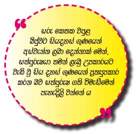ලැබූ උපකාරයට වැඩි වූ සිය දහස් ගුණයෙන් ප්රත්යුපකාර කරන බව සත්පුරුෂ ගති