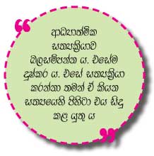 නොකැමැත්තෙන් මම සංග්රහ කරනවා. එහෙත් ඒ බව කිසිවකුට නොදැනුනේ ය. ඒ සත්ය බලයෙන්