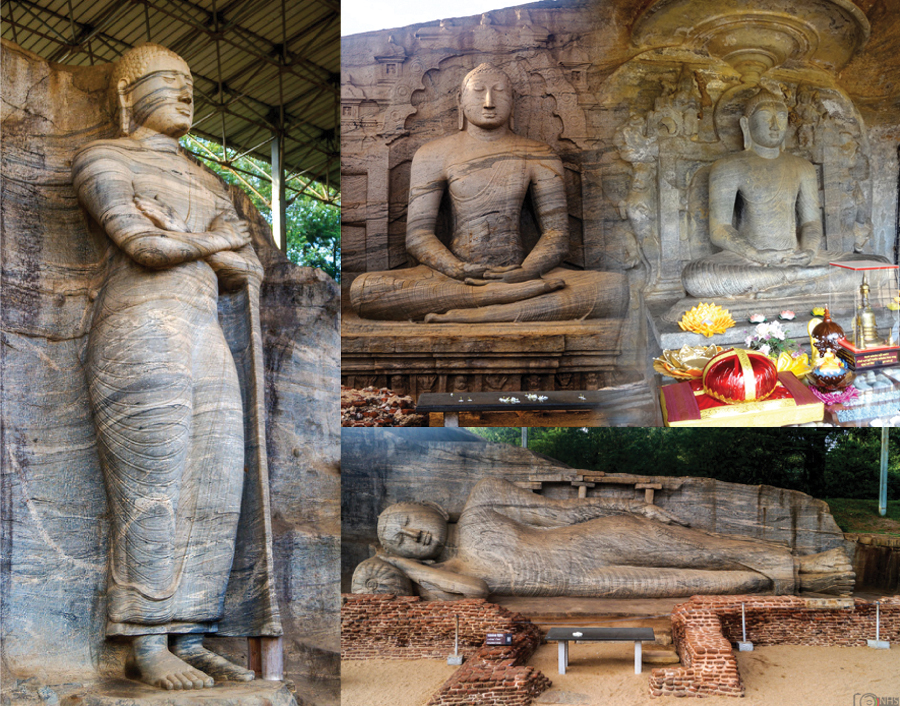 56ක් පමණ වන සෑම අතකට ම බෑවුම් වූ පර්වතයක් කපා පිළියෙළ කරන ලද පිළිම කිහිපයකින්