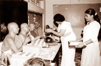 සංඝ රත්නය වෙත දන් පිළිගැන්වූ අයුරු.