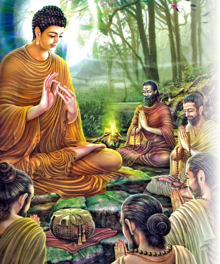 ඇසීමට එකඟ වූහ. මිනිසුන් අතුරෙන් පස්වග තවුසෝ එළිමහන් පෙදෙසක රැස්ව ධර්මය ශ්රවණයට