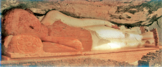 පර්යේෂණ " සීගිරියේ ඉහළ ගල් ලෙනක පිහිටා තිබෙන සැතපෙන බුදු පිළිම වහන්සේ ගඩොලින් සාදන
