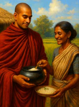දුන්නේ. මම මේ ආහාර දානය අර්හත් භාවය ලබාගෙන මිස වළඳන්නේ නෑ‘යි එවලේම ඒ අසල වනයට