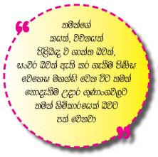 අධිෂ්ඨාන කරන්නට ඕනෙ මම, මගේ ශරීරය මුල් කරගෙන වරදක් වෙන්න දෙන්නේ නෑ. මම, මගේ වචනය